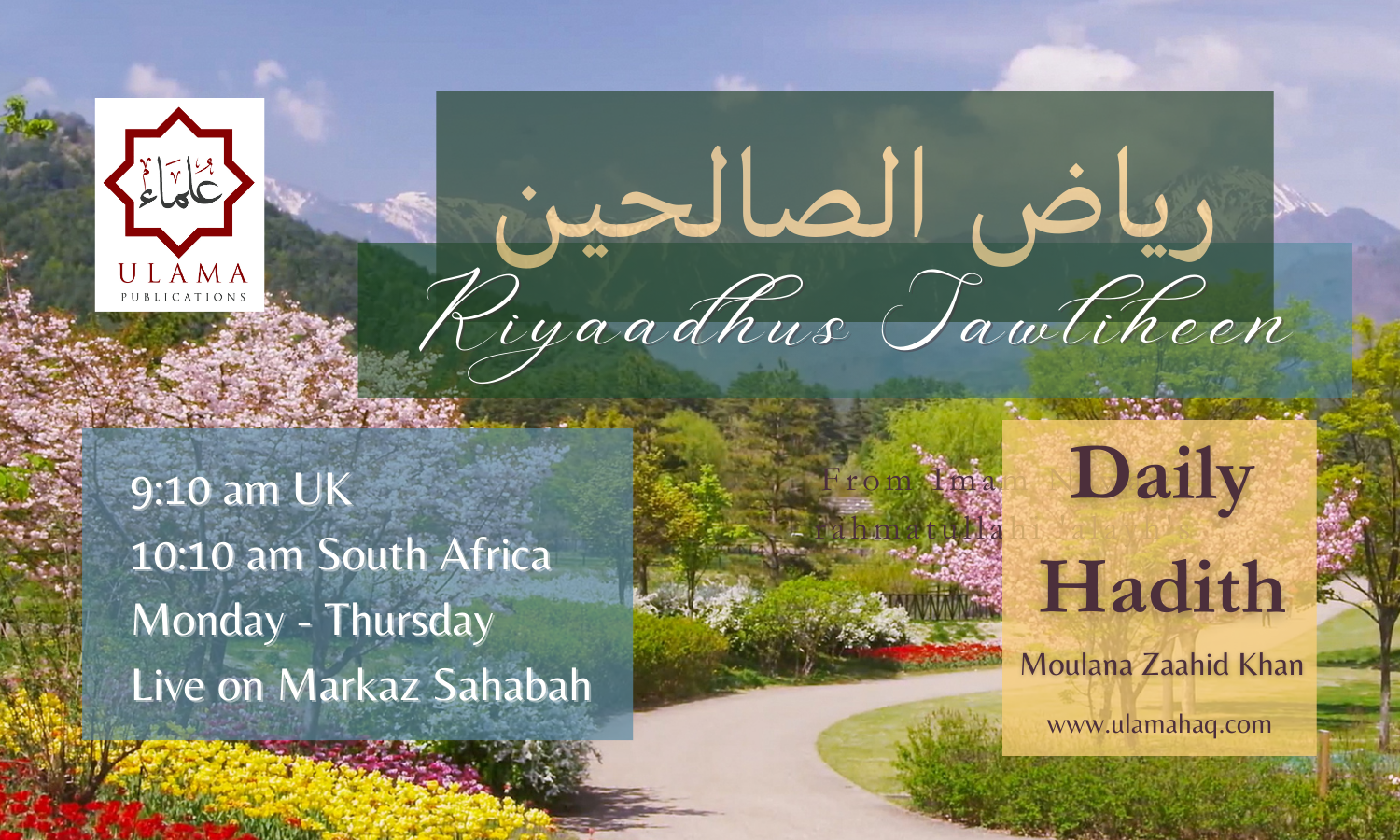 Moulana Zāhid ibn Jamīl reads and explains the Ahadith in Riyaadhus Sawliheen by Imam Nawawi رحمة الله عليه.